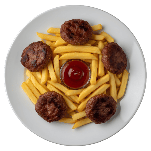 met Friet of Rijst (Turkse gehaktballetjes)